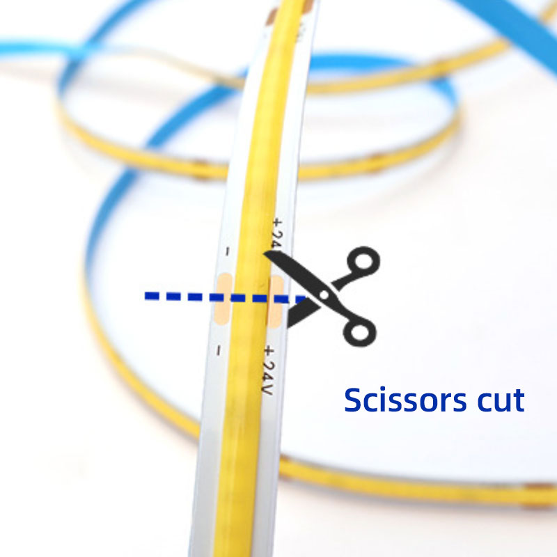 This is a COB LED light strip. It can achieve a uniform illumination effect without light spots or leaking beads. Common working voltages include low voltage types such as 24V, with ultra narrow light strips, such as 8mm width, and good flexibility. Suitable for indoor decorative lighting, it can be used in home decoration scenes without main lights, such as ceiling and background wall decoration, and can also be used for lighting in commercial places such as shop windows and signs.